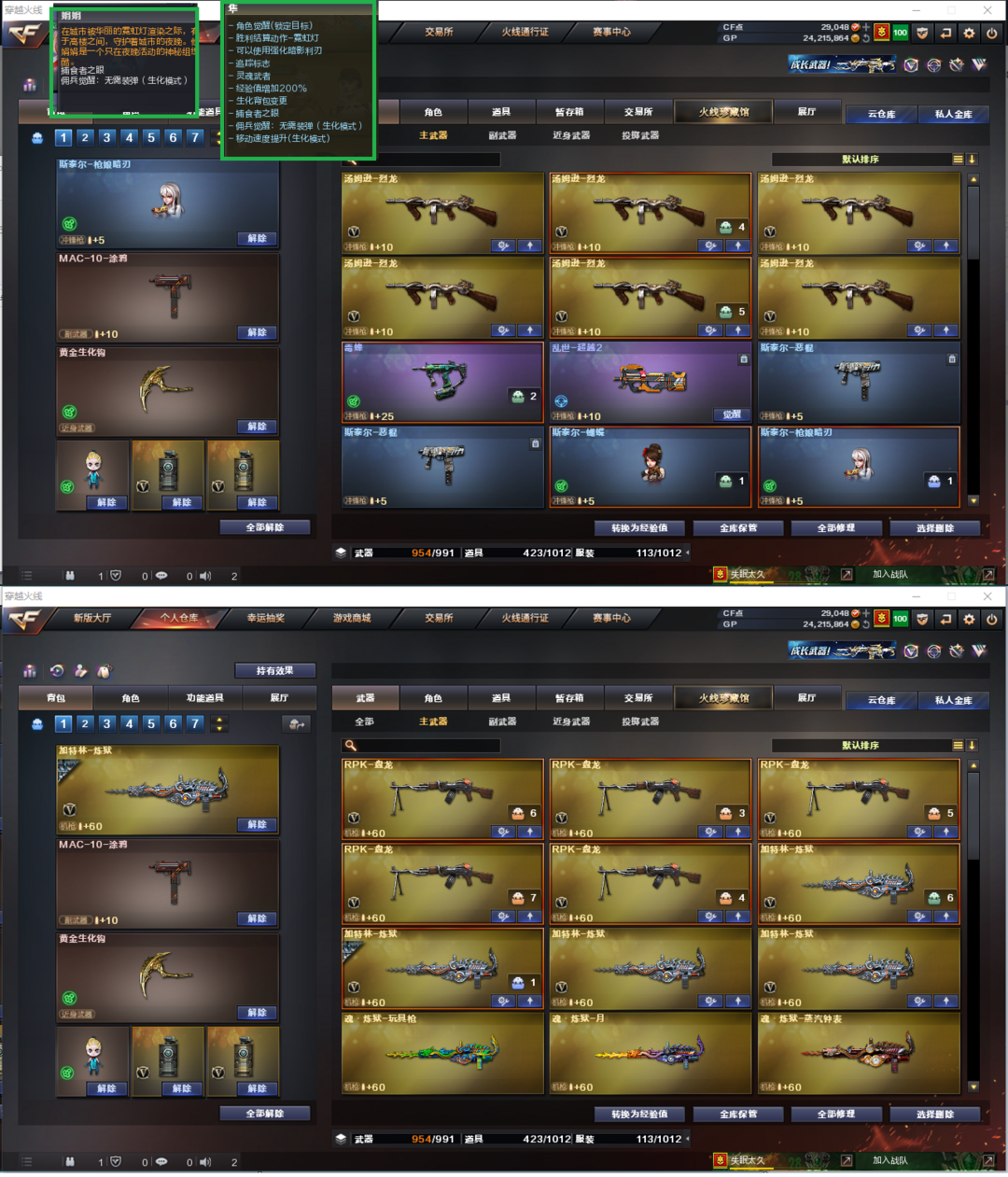 排位:可以、、、、、、、、、、、生化四防全装(可以变更北部、看僵尸血量)无需换弹、6烈龙、6盘龙、炼狱、斯泰尔蝴蝶、斯太尔枪娘暗刃、毒蜂、死亡之眼、MAC-涂鸦、手斧镜、生化减速雷、全部弹匣、、、、、、、爆破四防:幻神5皮(AG24冠军、宠儿、白鲨、电流骇客、纸灯笼皮肤)王者风神、王者幻神、、、、USP冥王、USP雷暴、6个COP幻灵、、、传说圣谕、G36幻影、QBZ金色蔷薇、王者凌虎、王者芳薇、白虎小艾、、、裁决音效、毁灭音效、雷神音效、极光音效、、、2套雷霆、1套玄豹、5套雷暴、1套夜魔、3套幻灵、、、生化四防(隼、娟娟)爆破四防(荒漠琉璃、王者春、王者闭月羞花、影豹、卡塔琳娜、职业经理)