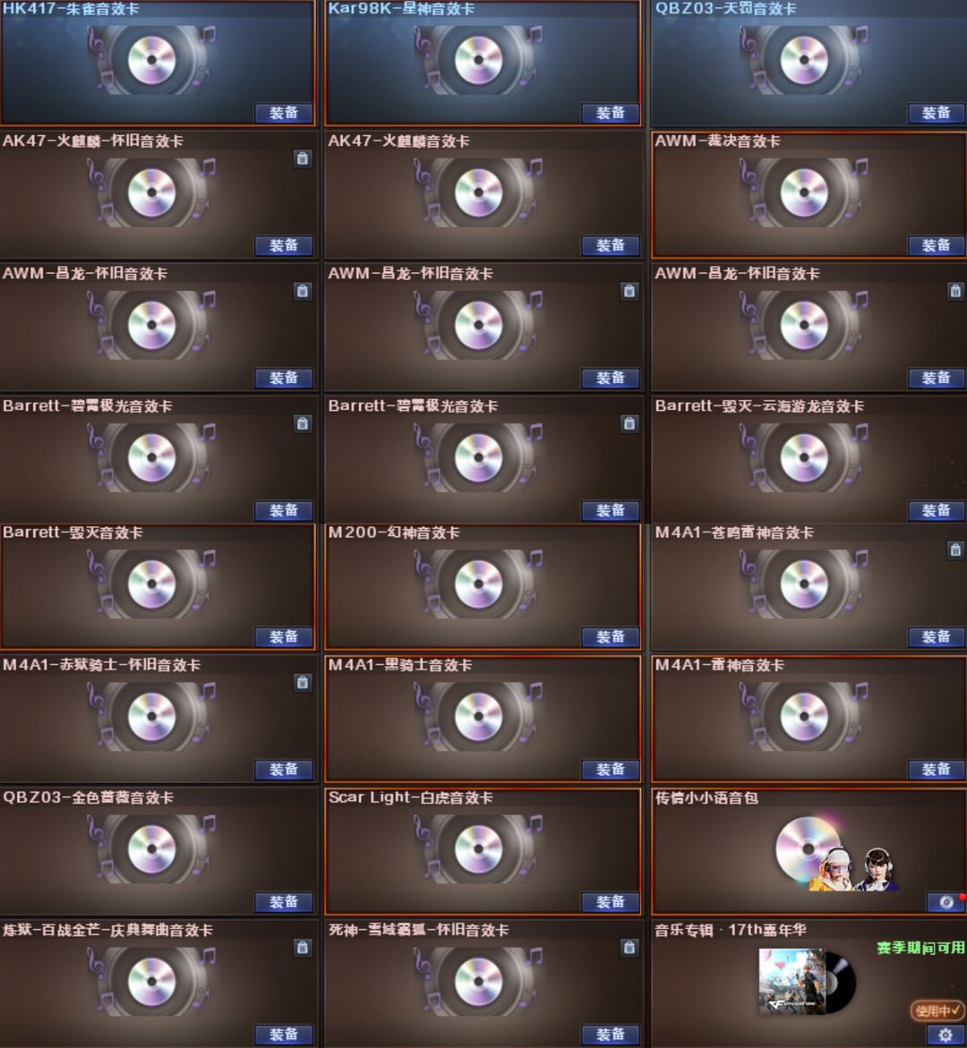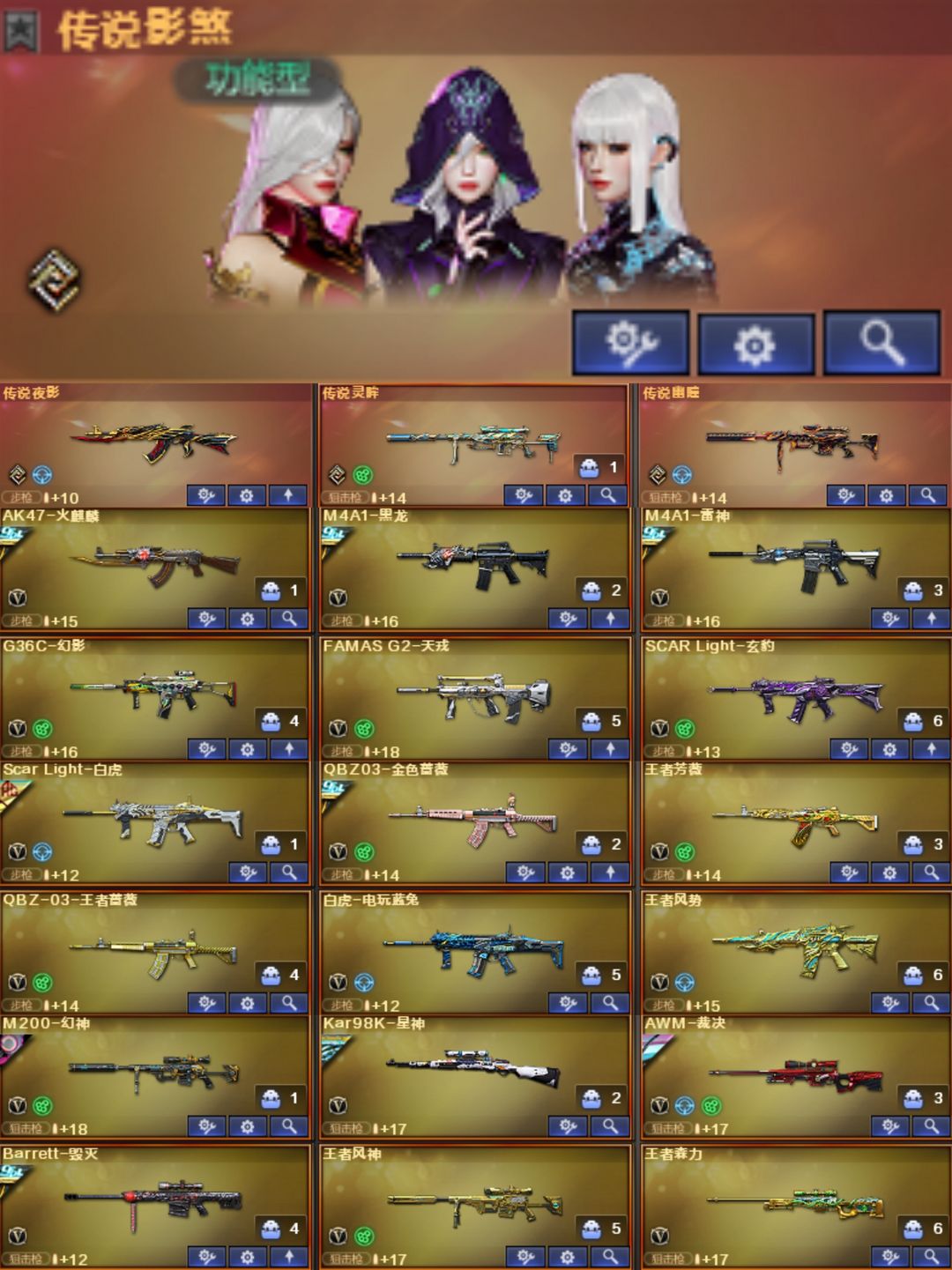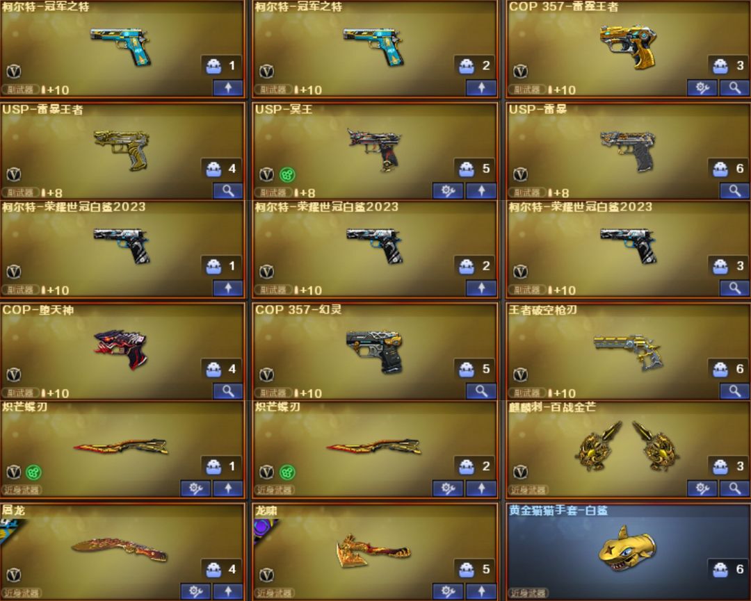 【传说影煞-传说幽瞳-传说灵眸-传说夜影】【幻神-AGS24冠军-传奇欧欧-Heartshot-宠儿-冠军之幻-白鲨2022-电流骇客-音效卡】【星神-黯钢战甲-冠军之星-巅峰荣耀-枪娘默-音效卡】【裁决-音效卡-巅峰荣耀-流光秘银-叶芒苍灵-百城】【白虎-AG冠军-白虎音效卡】【QBZ03-冠军之薇-Heartshot-量子蔷薇-白鲨-巅峰荣耀-音效卡】【玄豹】【天戎】【幻影】【柯尔特-白鲨*3】【USP-雷暴】【USP-雷暴王者】【USP-冥王】【柯尔特-冠军之特*2】【COP*3】【炽芒蝶刃】【云悠悠-关小雨-荒漠琉璃-晴雅-王者复仇-王者凌霄-王者潘多拉-王者沙漠玫瑰-王者影豹-王者雨墨-隼-空】