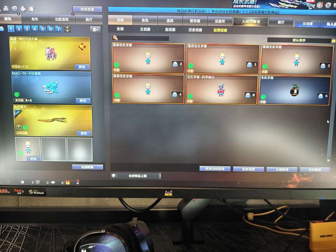 生化极品号,四防传说影煞(生化背包已开)泡泡象两把,蝴蝶刀两把,鲨鱼手枪两把,弹药拉满,详情看图