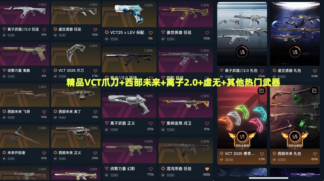 可排✅离子2.0⚡VCT爪刀⚡西部未来⚡虚空⚡掠夺⚡混沌紫金⚡侦察⚡离子正义⚡VCT25标配奇点2