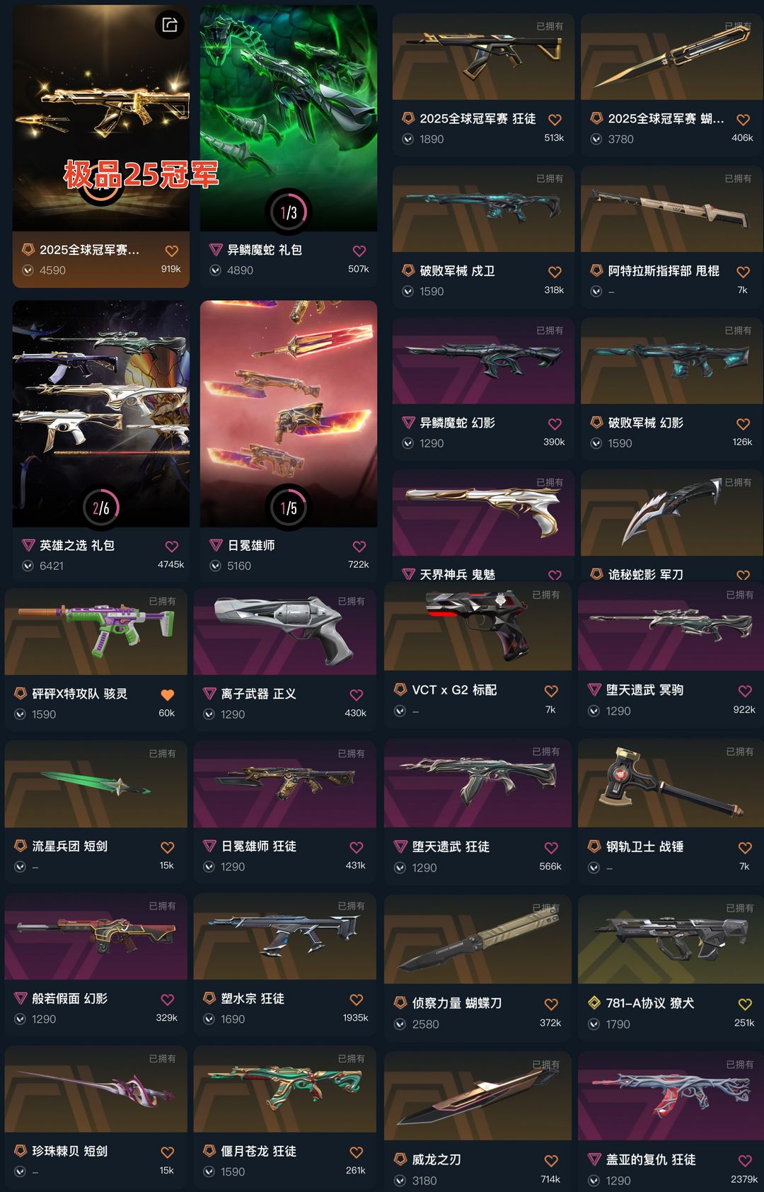可排✅25冠军✨塑水宗✨弃王盖亚狂徒✨破败幻影戍卫✨狮子狂徒781獠犬✨天界鬼魅✨威龙之刃侦查蝴蝶刀