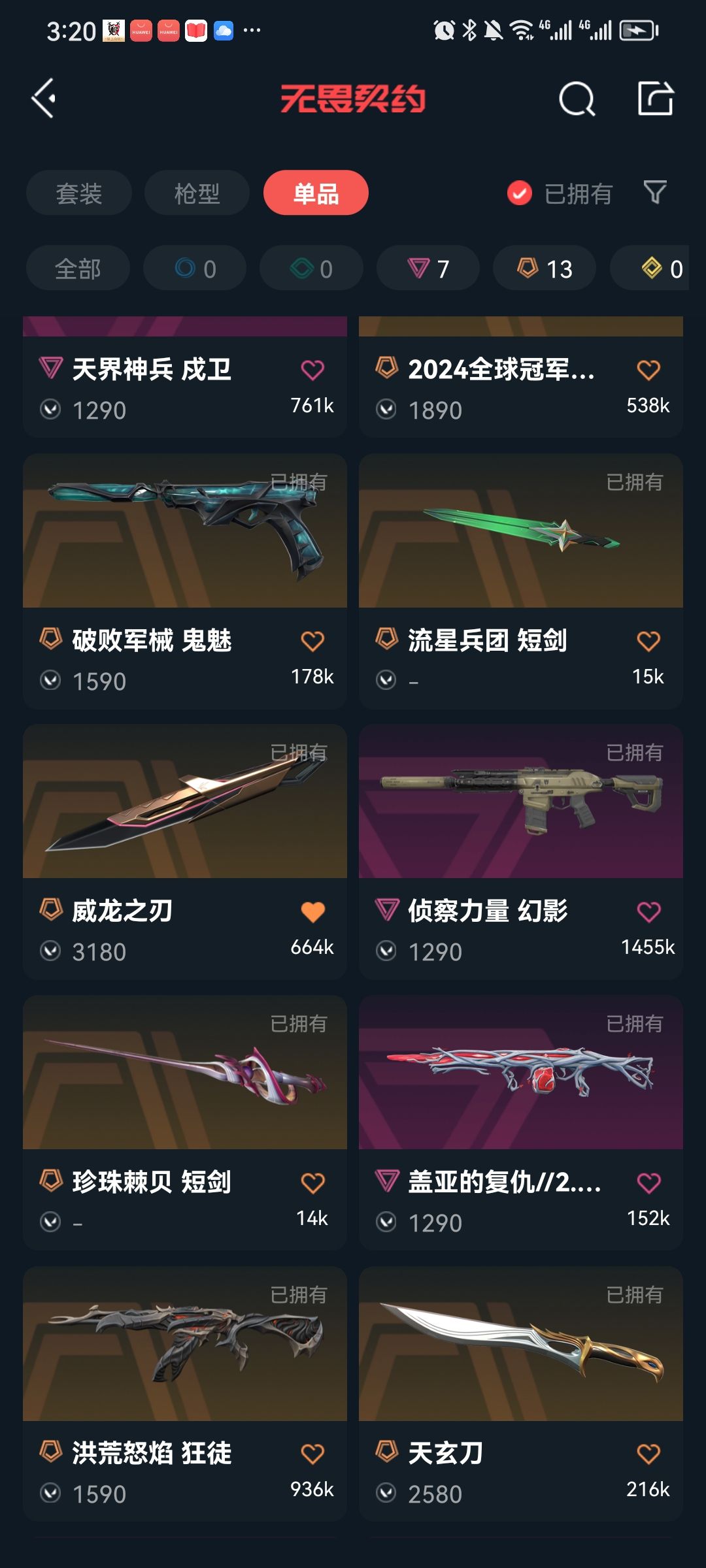 步枪:2024全球冠军赛 幻影;侦察力量 幻影;洪荒怒焰 狂徒;无畏契约GO!第一卷 戍卫;无垠星环 幻影;天界神兵 戍卫;偃月苍龙 狂徒;掠影 狂徒