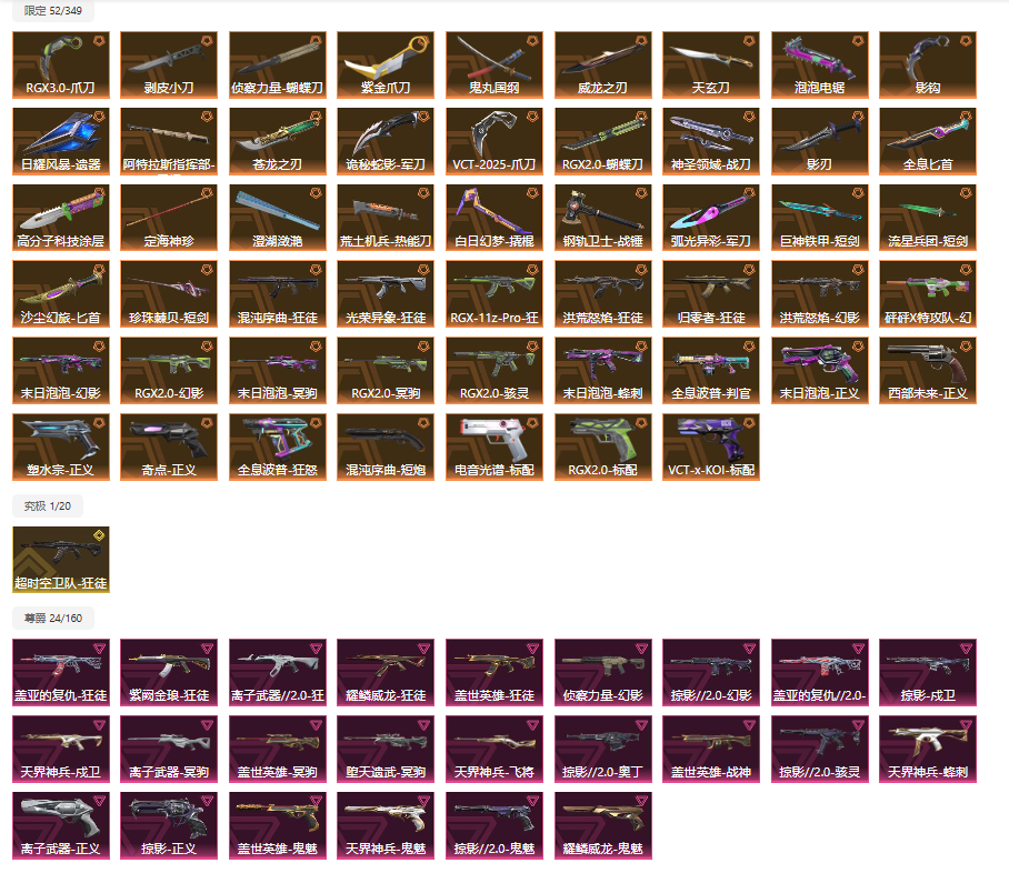 收藏到手机APP下单很便宜⭐13库W顶级⭐超/凡标⭐VCT苍龙⭐盖亚侦察剥皮鬼丸混沌流脓时空紫金离子