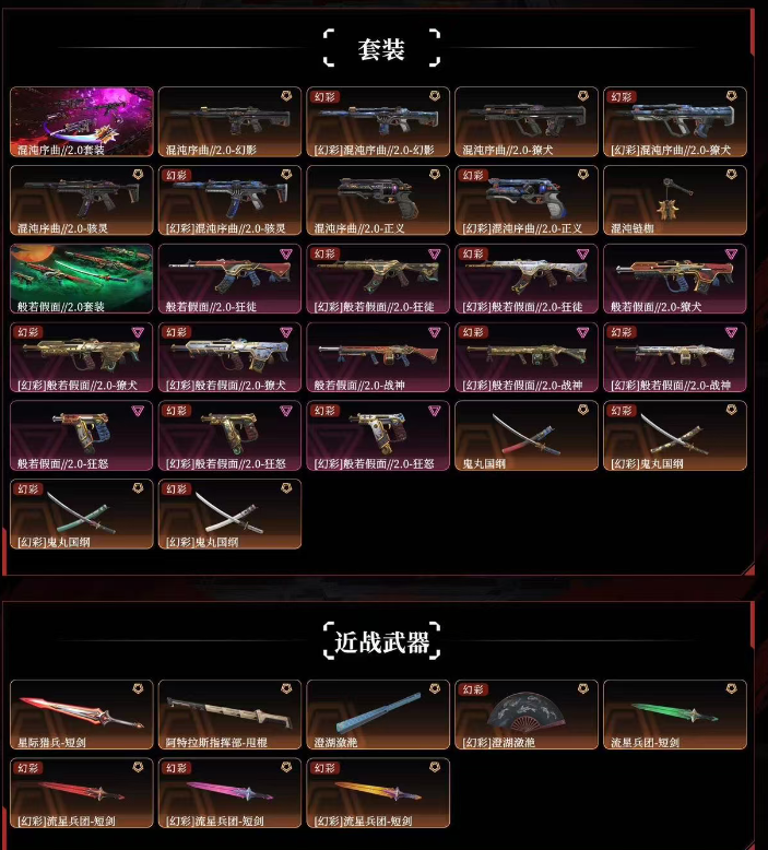 混沌2.0套♥班若套♥流脓狂徒♥归零2.0幻影♥紫金狂徒♥班若幻影♥紫金戍卫♥莲花正义♥掠影鬼魅