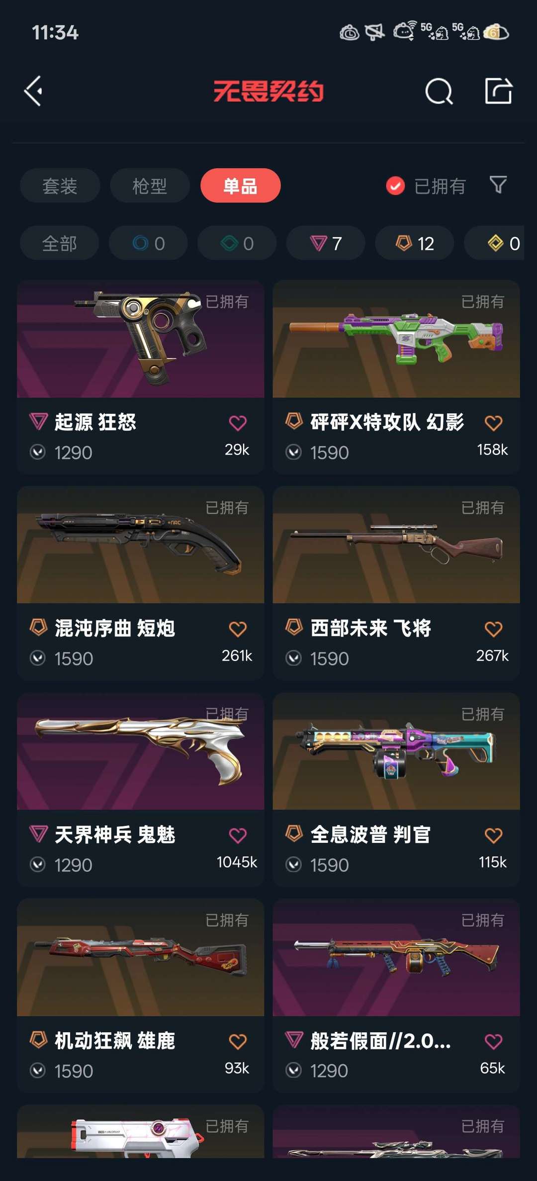 奇点蝴蝶,堕天大狙,混沌盖亚AK,砰砰特工队和24冠军幻影。除了戍卫莽侠和冲锋枪其他都有皮肤