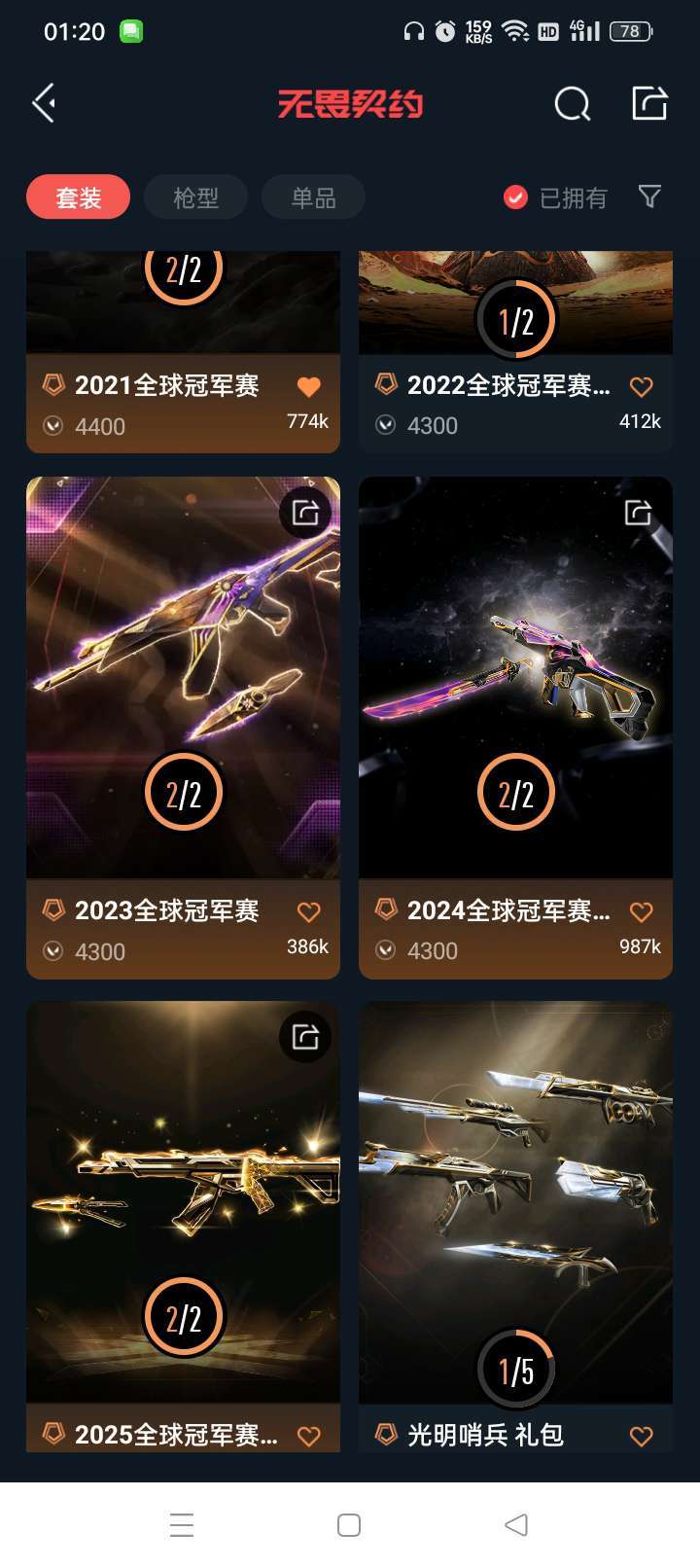 几乎全限定 21,23,24冠军套,24m4,双城之战1.2,离火刃,vct爪,每把武器都有好皮肤