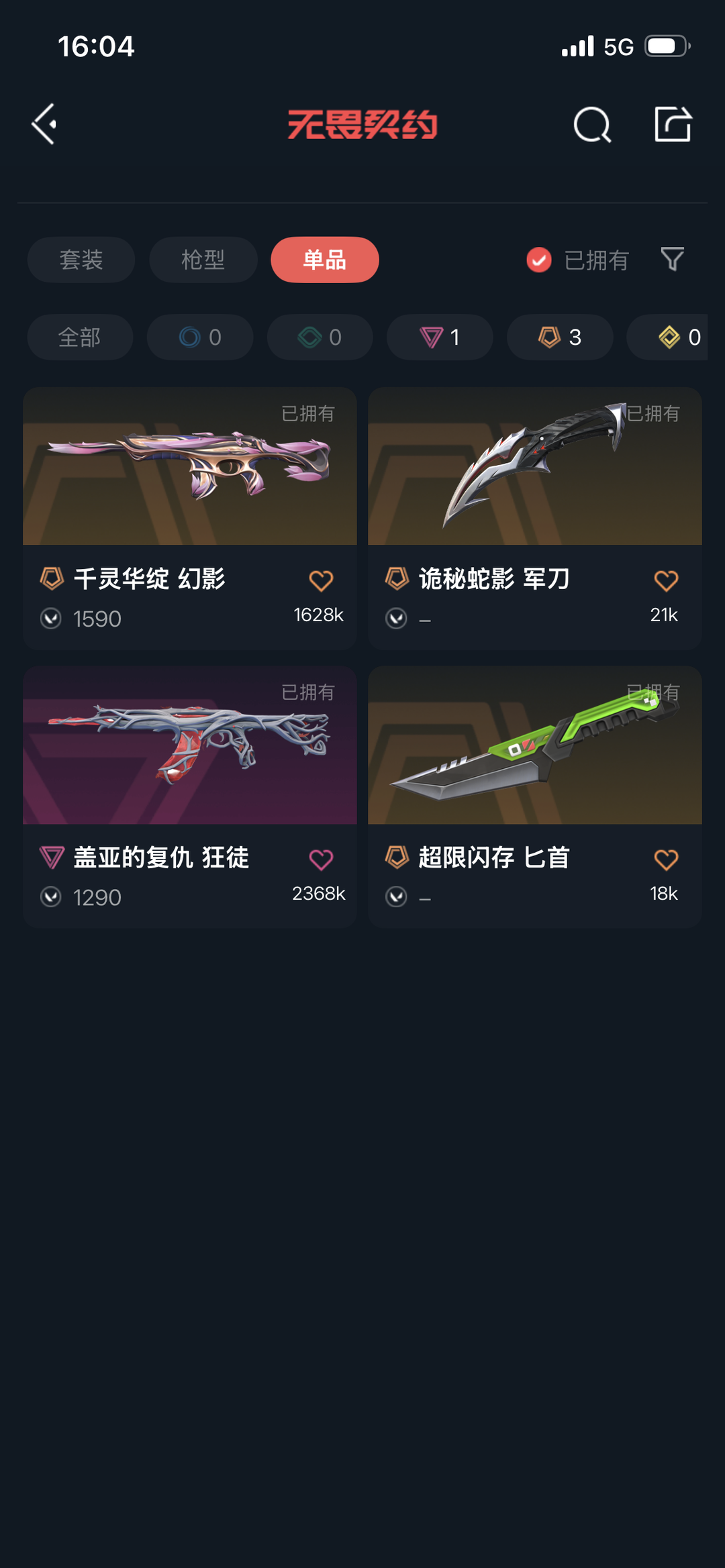 可排位⭐盖亚的复仇狂徒⭐千灵华绽幻影⭐超限闪存匕首⭐诡秘蛇影军刀⭐