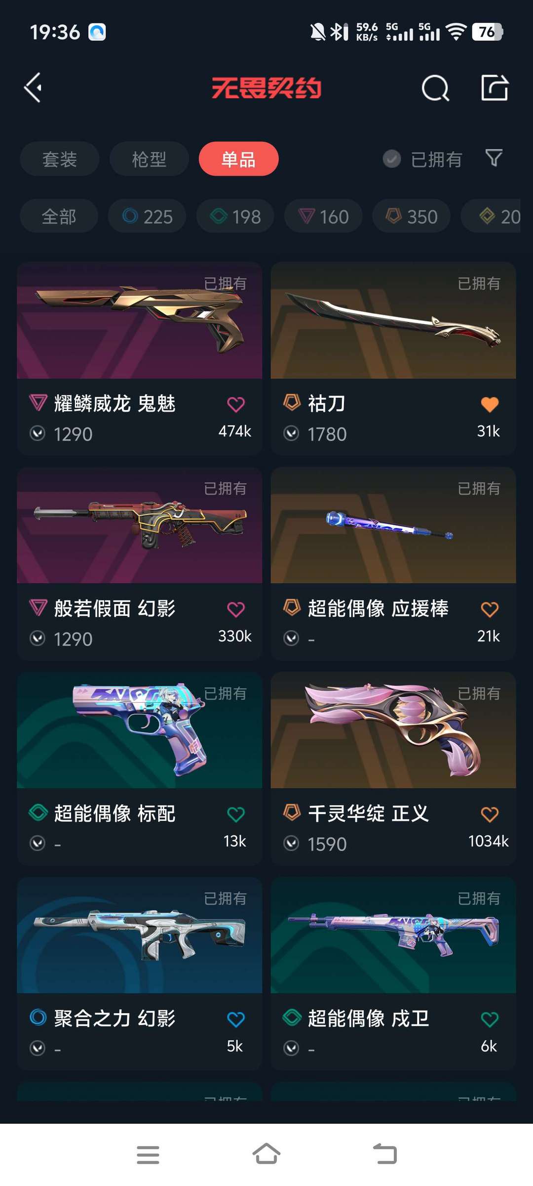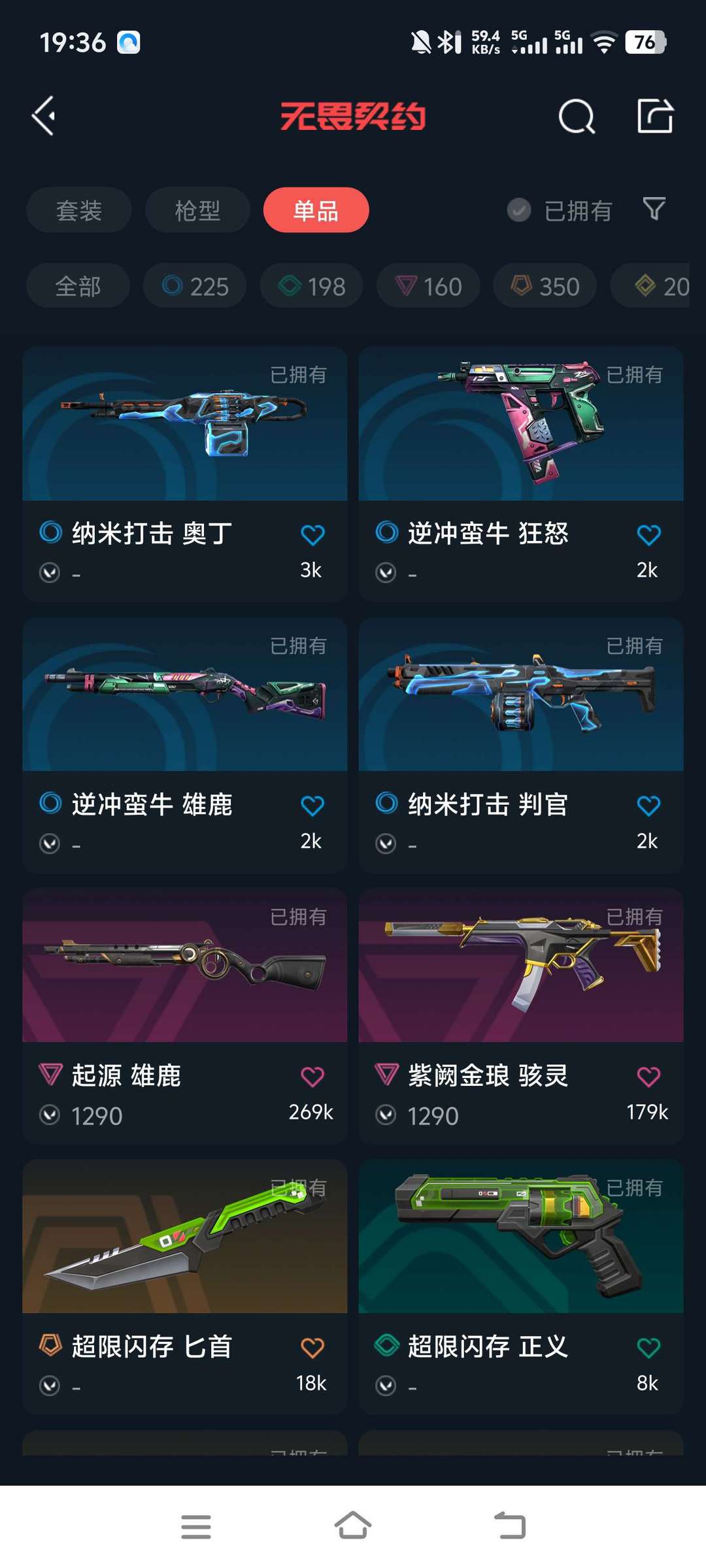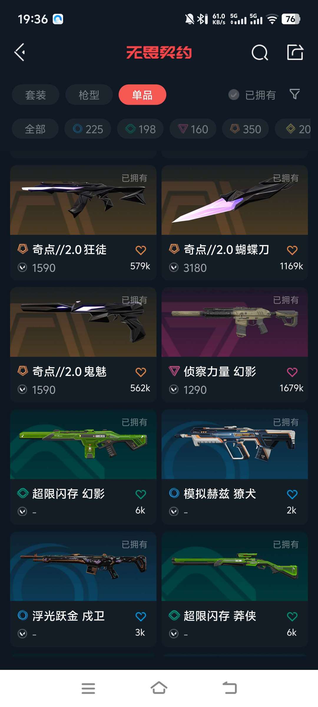 含奇点/2.0全套、混沌序曲狂徒、紫阙金琅系列,猫猫枪,耀鳞威龙等高价值皮肤