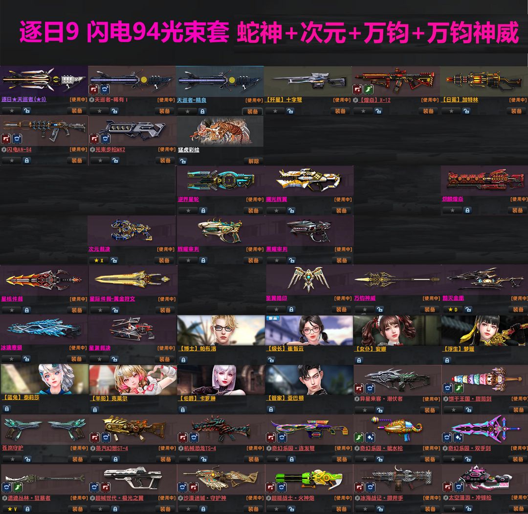 逐日天巡9☀闪电94光束套☀冰璃寒蟒万钧神威皓印次元裁决☀14-22赛季满☀博士级长