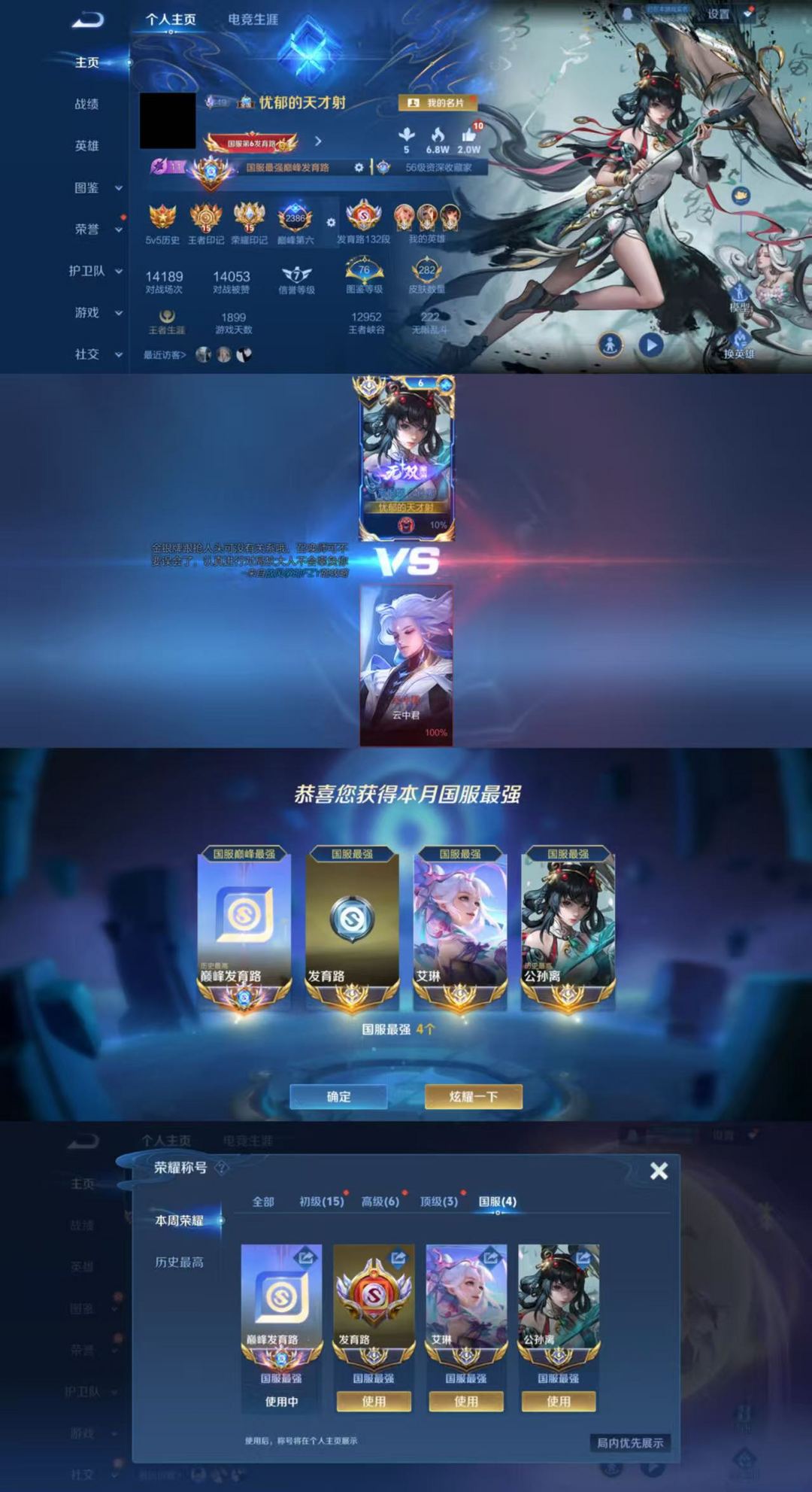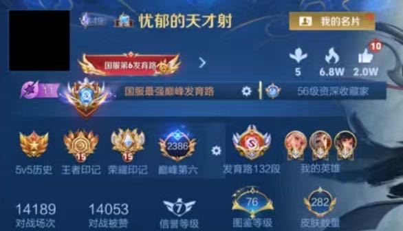 巅峰全国第六名框⭐11月正式服四国服发育路公孙离艾琳⭐全国职业logo认证⭐132段十国⭐禁巅峰