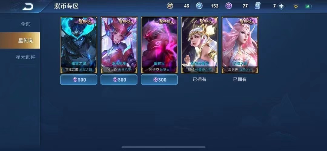 可直接上V10◆320皮4水2星全息星空杀手宣太后◆内测蔷薇幻海金貂蝉◆久胜战飞衡凤求凰零号赤焰