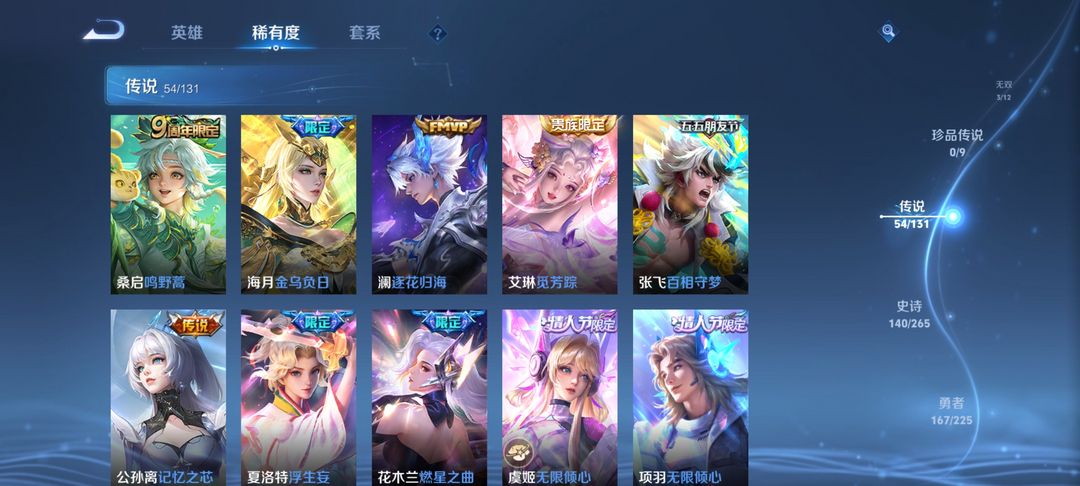 本游戏账号: V10用户,基础段位:至尊星耀V,英雄多,皮肤多。典藏皮肤6个,感受典藏皮肤带来的优质体验快感,FMVP皮肤5个,尽情享受FMVP皮肤带来的主角光环, 私人所属英雄皮肤有:诸葛亮 星域神启||虞姬 神鉴启示录||韩信 弑枪猎影||李白 鸣剑·曳影||夏侯惇 无限飓风号||芈月 大秦宣太后马可波罗 妄想实况||马可波罗 深海之息||孙悟空 地狱火||孙悟空 零号·赤焰||诸葛亮 时雨天司||司空震 愿照·山河定||狄仁杰 神器·狴犴令||狄仁杰 超时空战士||澜 愿照·九州拓||铠 绛天战甲||铠 冥王哈迪斯||虞姬 愿照·岁时盈||虞姬 启明星使||虞姬 云霓雀翎||孙尚香 乘龙·问璇玑||孙尚香 异界灵契||干将莫邪 画中仙||女娲 愿照·千秋盛||嬴政 玄雷天君||李信 山海·炽霜斩||李信 一念神魔||艾琳 觅芳踪||妲己 愿照·众生和||墨子 黄金天蝎座||鲁班七号 寅虎·瑞焰||不知火舞 绯月行||公孙离 祈雪灵祝||宫本武藏 地狱之眼||王昭君 映山客|