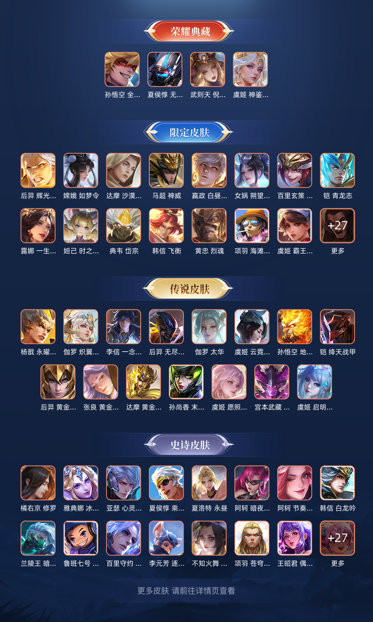 本游戏账号: ,英雄多,皮肤多。典藏皮肤3个,感受典藏皮肤带来的优质体验快感,FMVP皮肤2个,尽情享受FMVP皮肤带来的主角光环, 私人所属英雄皮肤有:孙悟空 全息碎影||武则天 倪克斯神谕||夏侯惇 无限飓风号杨戬 永曜之星||达摩 黄金狮子座||孙尚香 末日机甲||李信 一念神魔||孙悟空 地狱火||后羿 黄金射手座||虞姬 云霓雀翎||虞姬 启明星使||张良 黄金白羊座||铠 绛天战甲||伽罗 太华||宫本武藏 地狱之眼,等等