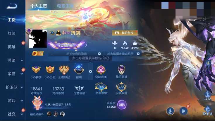 本游戏账号: V10荣耀贵族用户,基础段位:永恒钻石I,英雄多,皮肤多。典藏皮肤17个,感受典藏皮肤带来的优质体验快感,FMVP皮肤10个,尽情享受FMVP皮肤带来的主角光环, 私人所属英雄皮肤有:瑶 拾光映像||虞姬 神鉴启示录||程咬金 活力突击||韩信 弑枪猎影||关羽 赤影疾锋||芈月 大秦宣太后||诸葛亮 星域神启||孙悟空 全息碎影||铠 银白咏叹调||花木兰 九霄神辉||武则天 倪克斯神谕||鲁班七号 星空梦想||貂蝉 幻阙歌||小乔 天鹅之梦||夏侯惇 无限飓风号||李白 鸣剑·曳影||孙尚香 杀手不太冷,等等