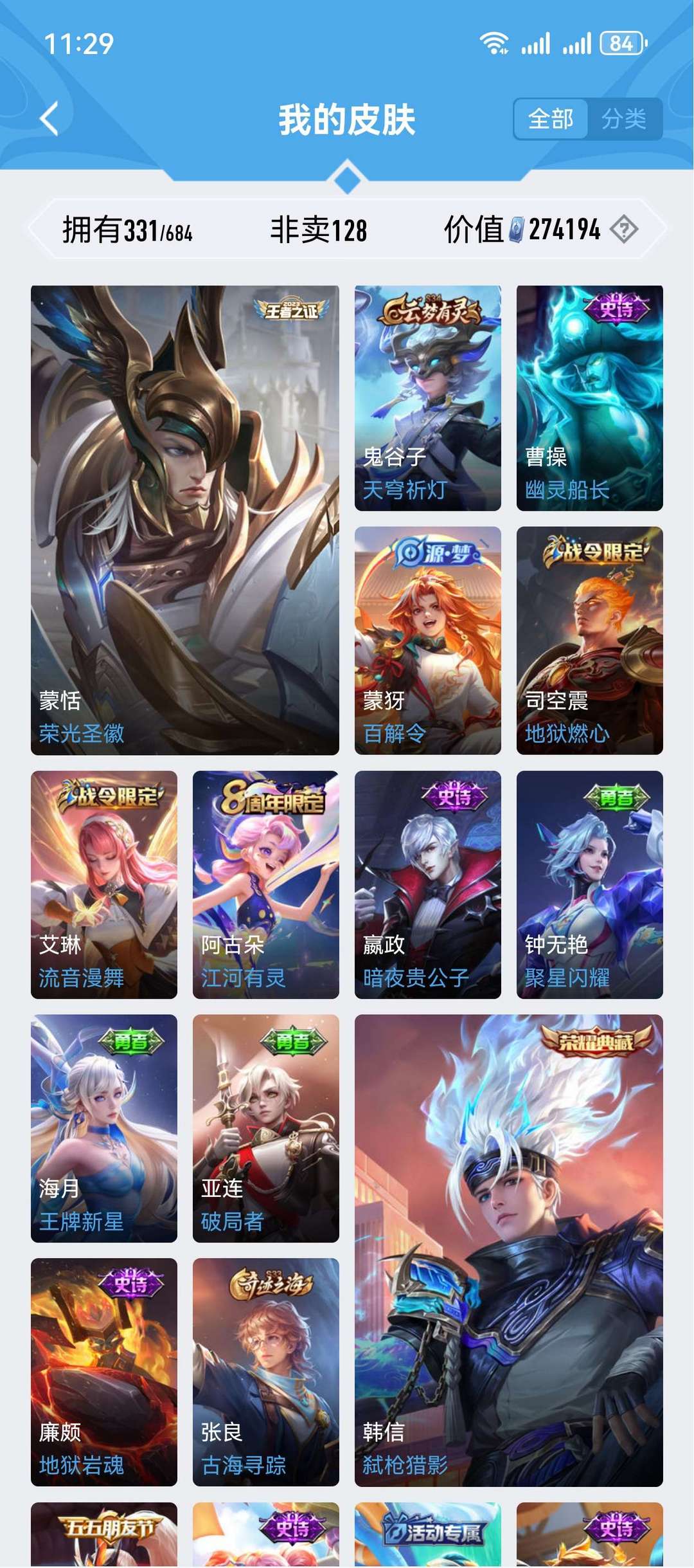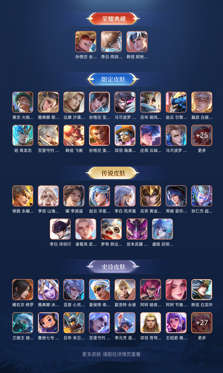 本游戏账号: ,英雄多,皮肤多。典藏皮肤3个,感受典藏皮肤带来的优质体验快感,FMVP皮肤1个,尽情享受FMVP皮肤带来的主角光环, 私人所属英雄皮肤有:孙悟空 全息碎影||韩信 弑枪猎影||李白 鸣剑·曳影诸葛亮 武陵仙君||孙悟空 齐天大圣||桑启 鸣野蒿||狄仁杰 超时空战士||王昭君 乞巧织情||后羿 黄金射手座||虞姬 启明星使||赵云 淬星耀世||曜 李逍遥||宫本武藏 地狱之眼||杨戬 永曜之星||周瑜 音你心动||梦奇 胖达荣荣||李信 山海·炽霜斩||李白 凤求凰||李白 诗剑行,等等