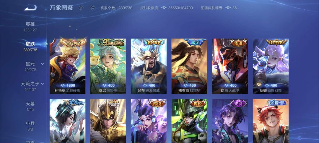 全套铭文带妹神号全息碎影等超多皮肤貂蝉超多皮肤,海月,孙策历史市标