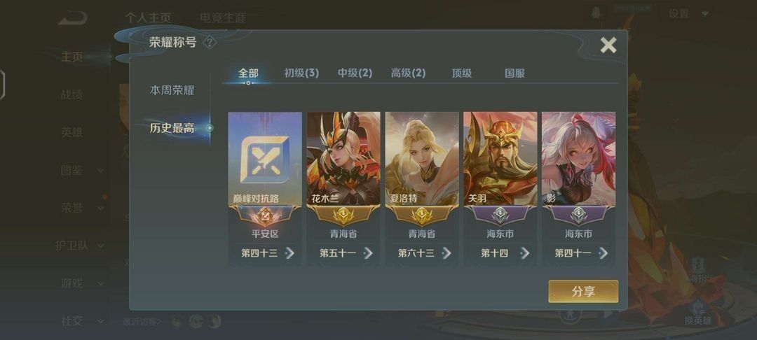 巅峰1477,历史省花木兰夏洛特,黄金狮子座 ,水晶猎龙者,永昼,可排位可巅峰