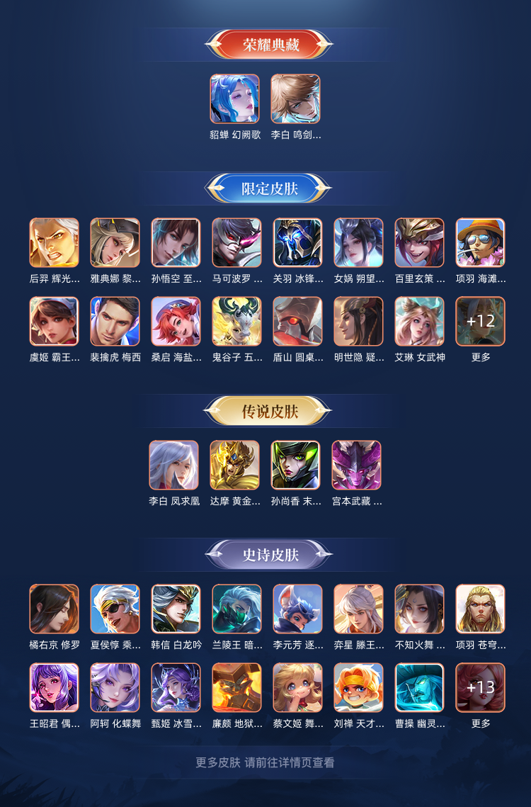 梅西 至尊宝 凤求凰 李白荣耀典藏 貂蝉荣耀典藏