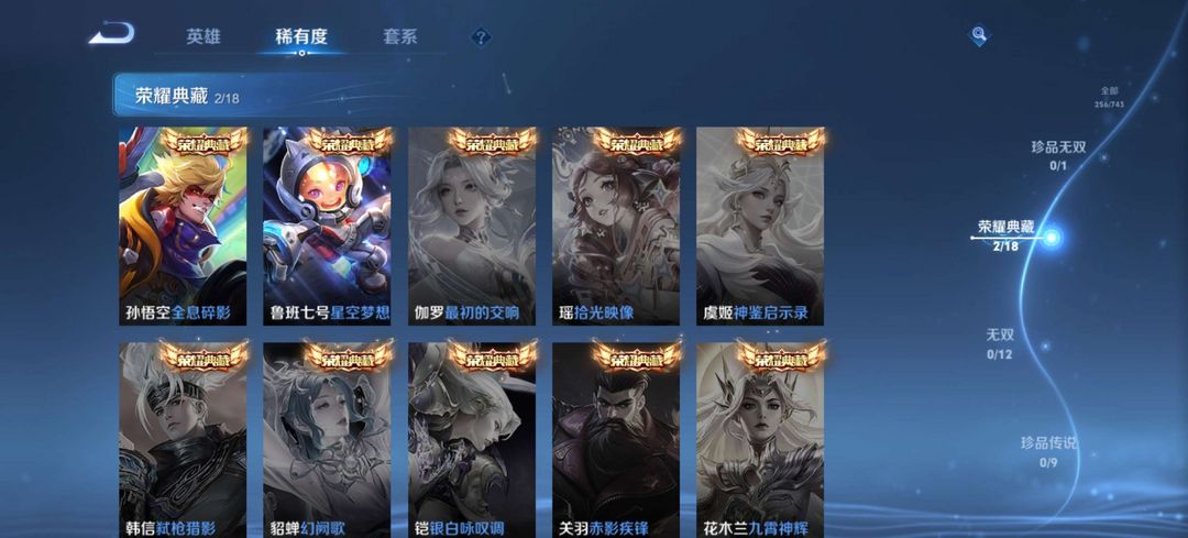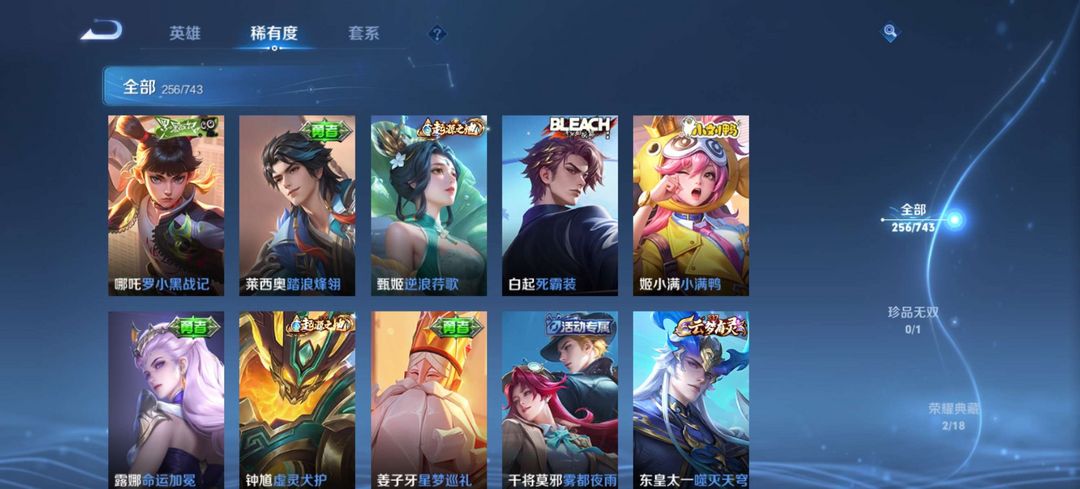 256个皮肤,全铭文,无双王者,差一个英雄熬隐全英雄