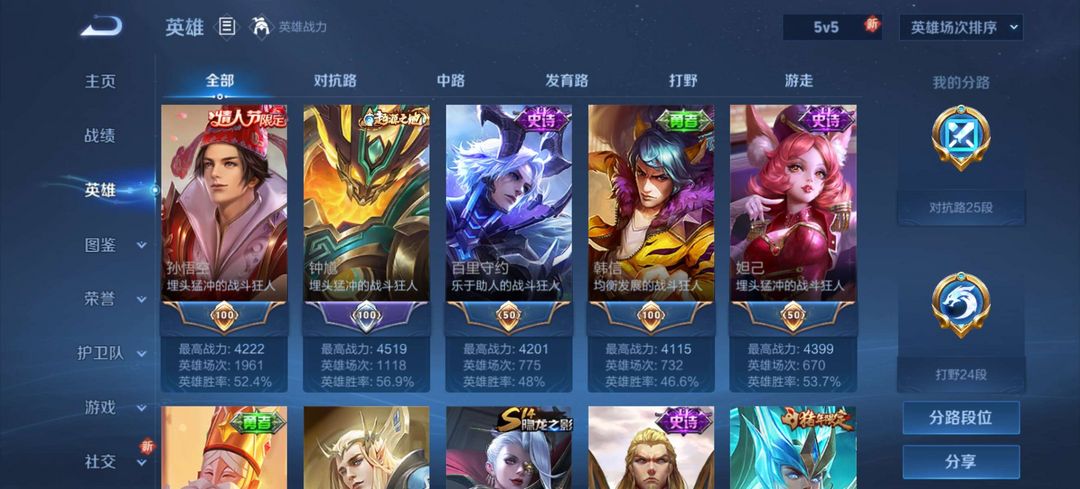 可以打排位,金币钻石特别多,英雄打野韩信,猴子,盘古比较多