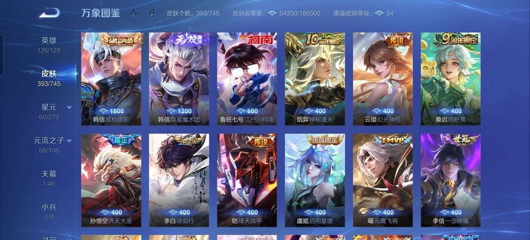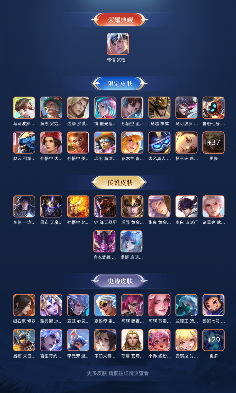 390套经典皮肤 126个英雄 贵族8 非凡王者