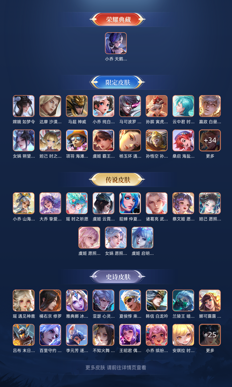 V8 小乔天鹅之梦 300+皮肤 86史诗皮肤 18传说皮肤 全英雄畅玩 可排位金币可用 砖石可用