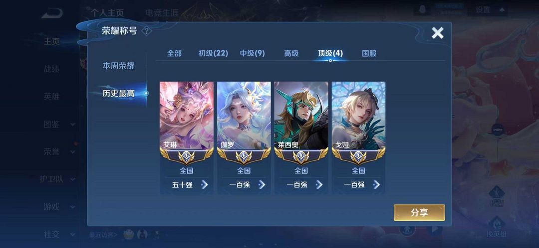 百星✨不禁言富婆号✨国服艾琳伽罗莱西奥戈娅✨全皮肤貂蝉天幕✨3小兵✨