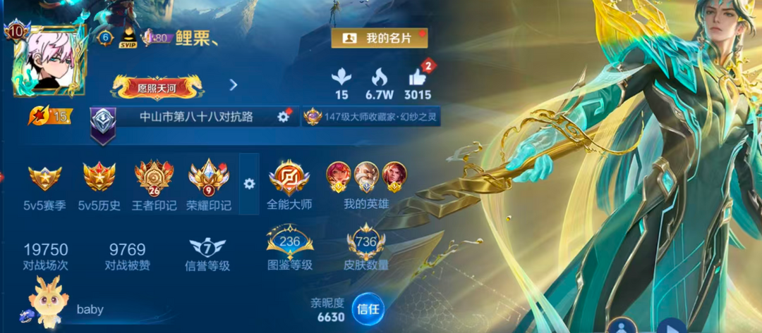 736皮/凯无双神罪/杨戬纵目迁山/对抗路59段/满水晶/满珍品无双皮肤/多限定天幕/准满皮肤
