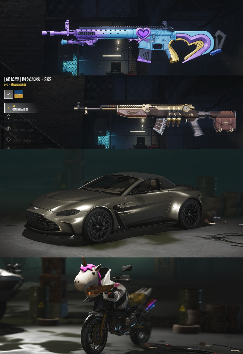 阿斯顿马丁跑车【二成长型✌魔咒之力MK12✌二级时光加农SKS】大金牙✌渔夫帽✌窒息的爱套装✌魔力甜心橙加粉套✌小兔学院套✌青龙ACE✌青花MINI✌宝藏AKM✌猎手AKM✌迷宫S12K✌