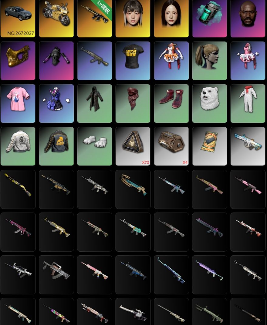---此号为平台网吧电竟专用号,家庭用户无法租用--- 布加迪白红双色/兰博基尼/杜卡迪/满级猪八戒M416/异色无重力MP5K/权志龙AUG/孙悟空M24/妖魔之触ACE/爆裂AUG/双女团套装/魔力甜心全套/彩色烟雾弹/黑鬼/发光套/绷带AKM/西游记套装/大金牙/青海摇