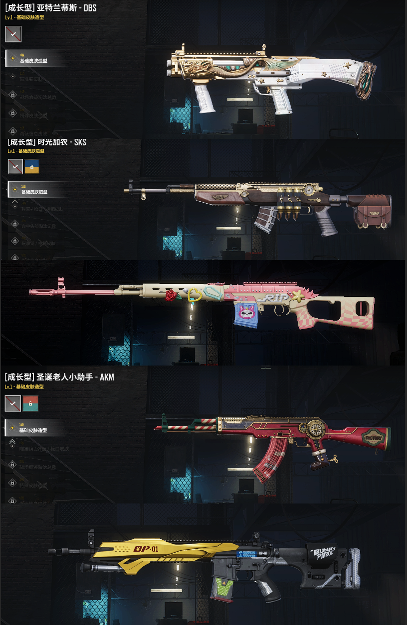 小战神套装【五成长✌亚特兰DBS✌圣诞AKM✌小兔MK12✌粉梦德拉贡✌时光加农sks】发光手臂✌滑雪镜✌白熊套✌柠檬汁M4✌青花M762✌小兔M4✌无信号S12K✌十字军SKS✌王者风衣红鞋套✌轰炸机夹克✌卡通学院夹克✌五周年夹克