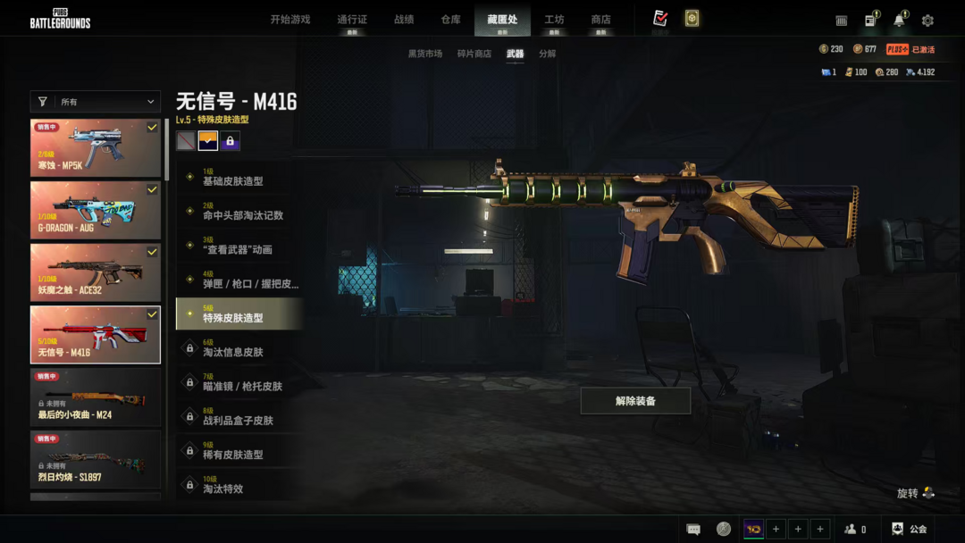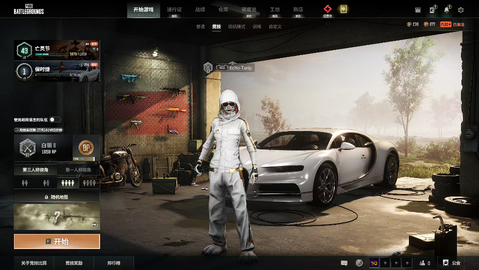 绝地求生➕PLUS可排位√布加迪跑车√⑤级无信号m416异色√②级mp5k寒蚀√两个①级√紫色烟枪