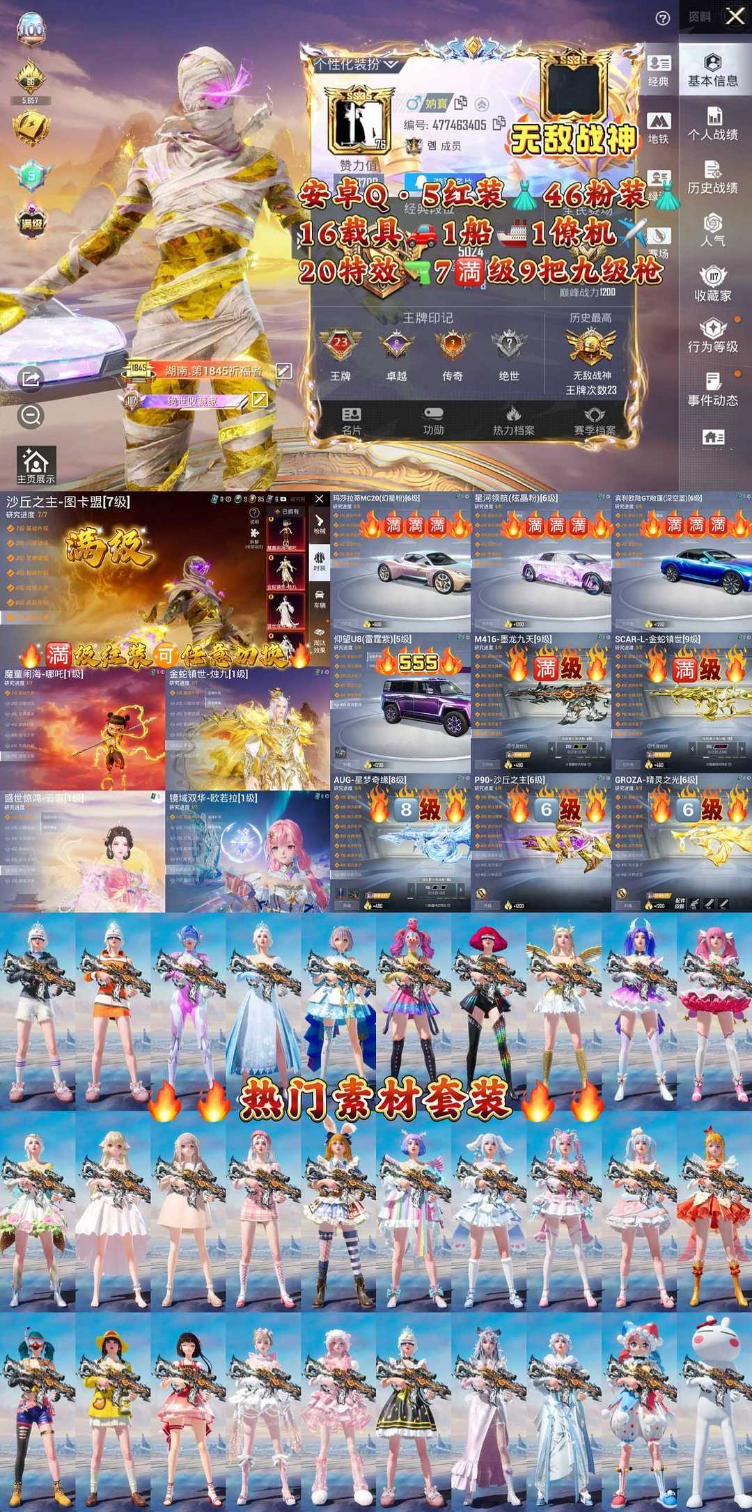 满级图卡盟哪吒无损拆解切换❤满级星梦奇缘墨龙M4金蛇死噶❤4台满级车❤热门雪国红蹦蹦战神框
